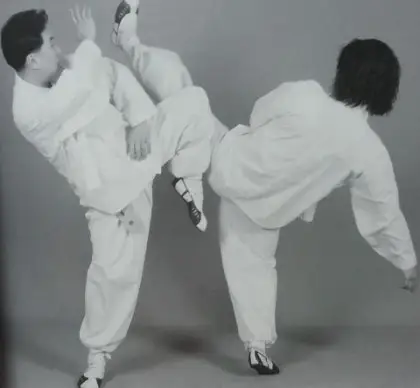 발질과 손질이 들어오는 순간, 몸을 틀거나 뒤로 물러나며 피해 흐름을 유지합니다.